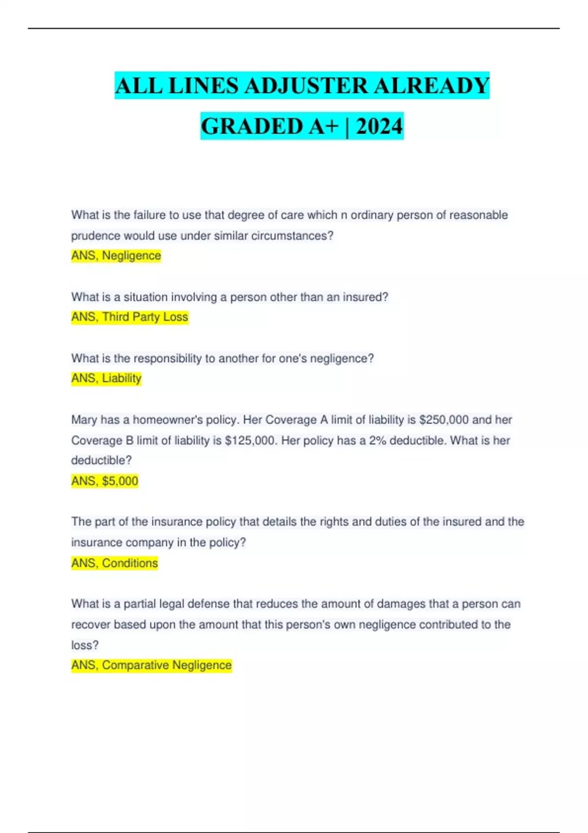 ALL LINES ADJUSTER ALREADY GRADED A+ | 2024
