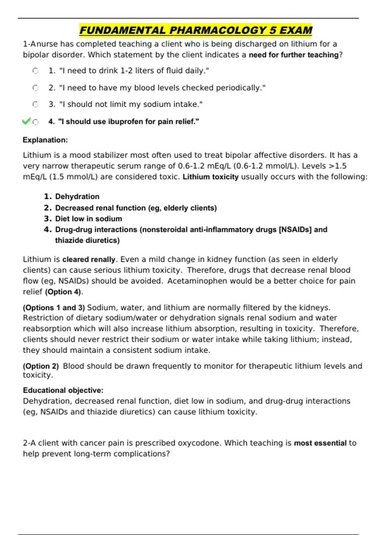 FUNDAMENTAL PHARMACOLOGY 5 EXAM
