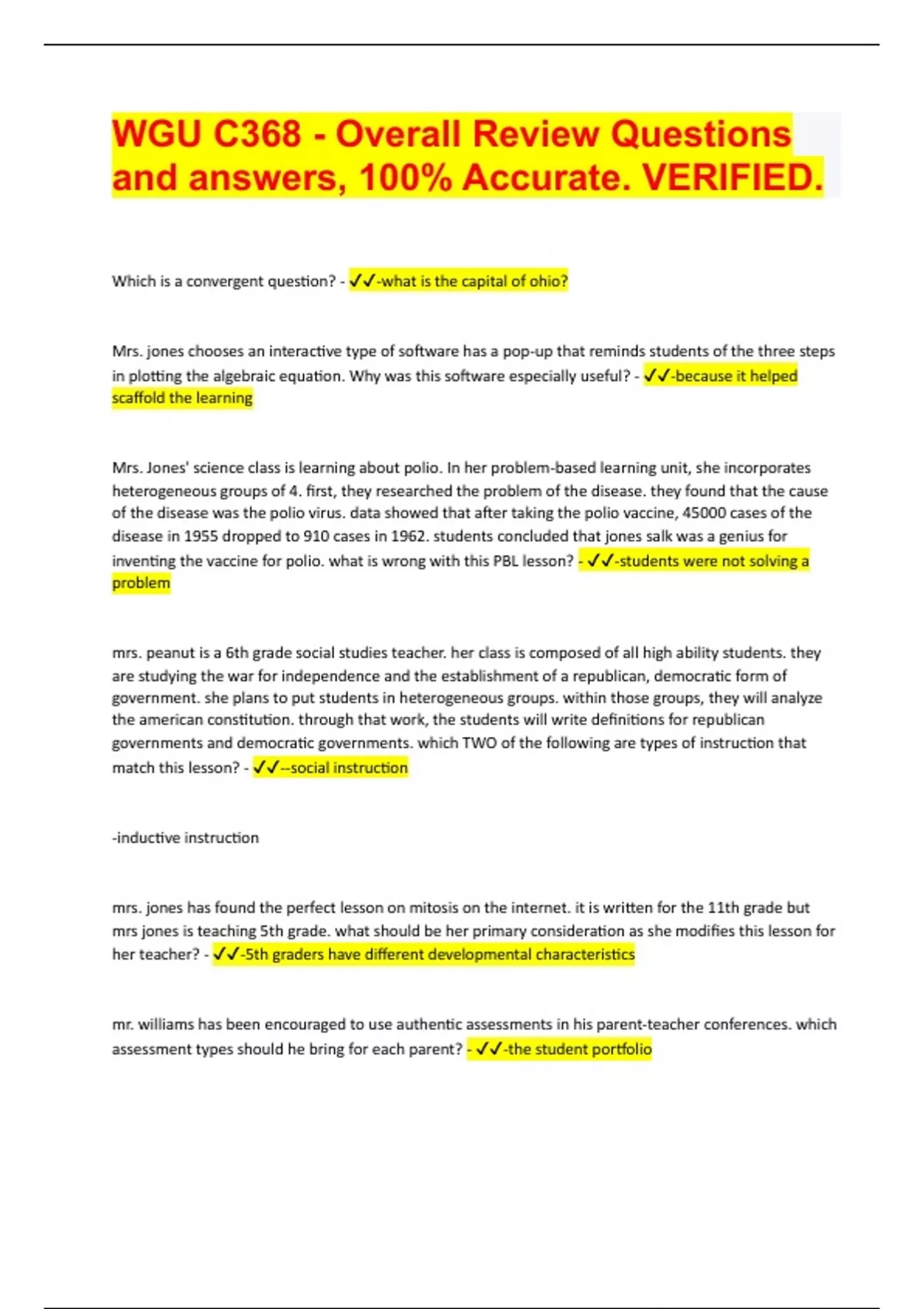WGU C368 - Overall Review Questions and answers, 100% Accurate. VERIFIED
