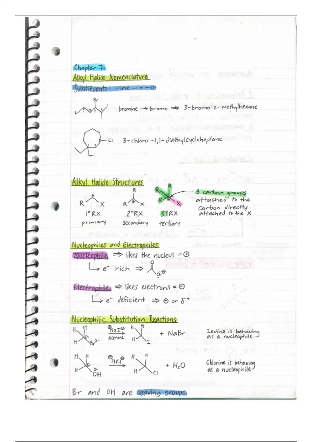 Part 1 of Chapter 7 of Organic Chemistry 1 at App State (CHE2201) taught by Dr. Moeller. This chapter is very long so it is split into two parts. The first part of this chapter covers alkyl halide nomenclature, nucleophiles, substitution reactions (SN1 and SN2), reaction rates, leaving groups, solvents, and solvolysis. Some images/definitions are not entirely my own; credit for any work that is not mine goes to its rightful owners.