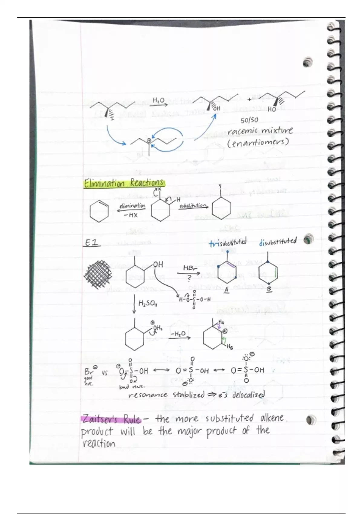 Part 2 of Chapter 7 of Organic Chemistry 1 at App State (CHE2201) taught by Dr. Moeller. This chapter is very long so it is split into two parts. The second part of this chapter covers elimination, Zaitsev's rule, hyperconjugation, regioselectivity, cis & trans alkenes, Newman projections, and rearrangements. Some images/definitions are not entirely my own; credit for any work that is not mine goes to its rightful owners.