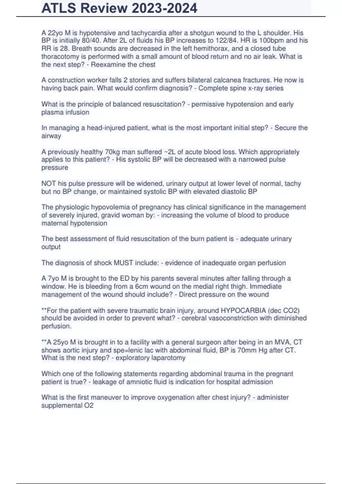 Exam of 8 pages for the course ATLS 2023 at ATLS 2023 (ATLS Review)