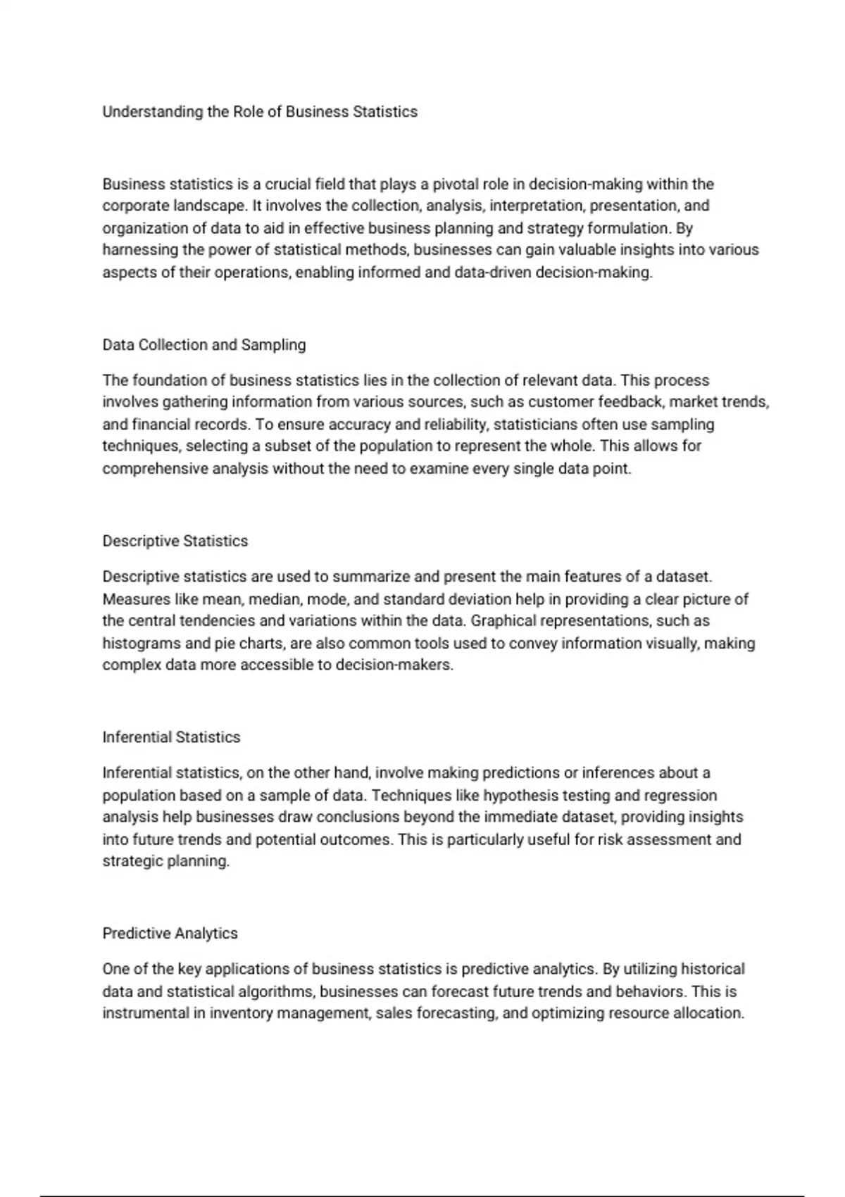 Understanding the Role of Business Statistics