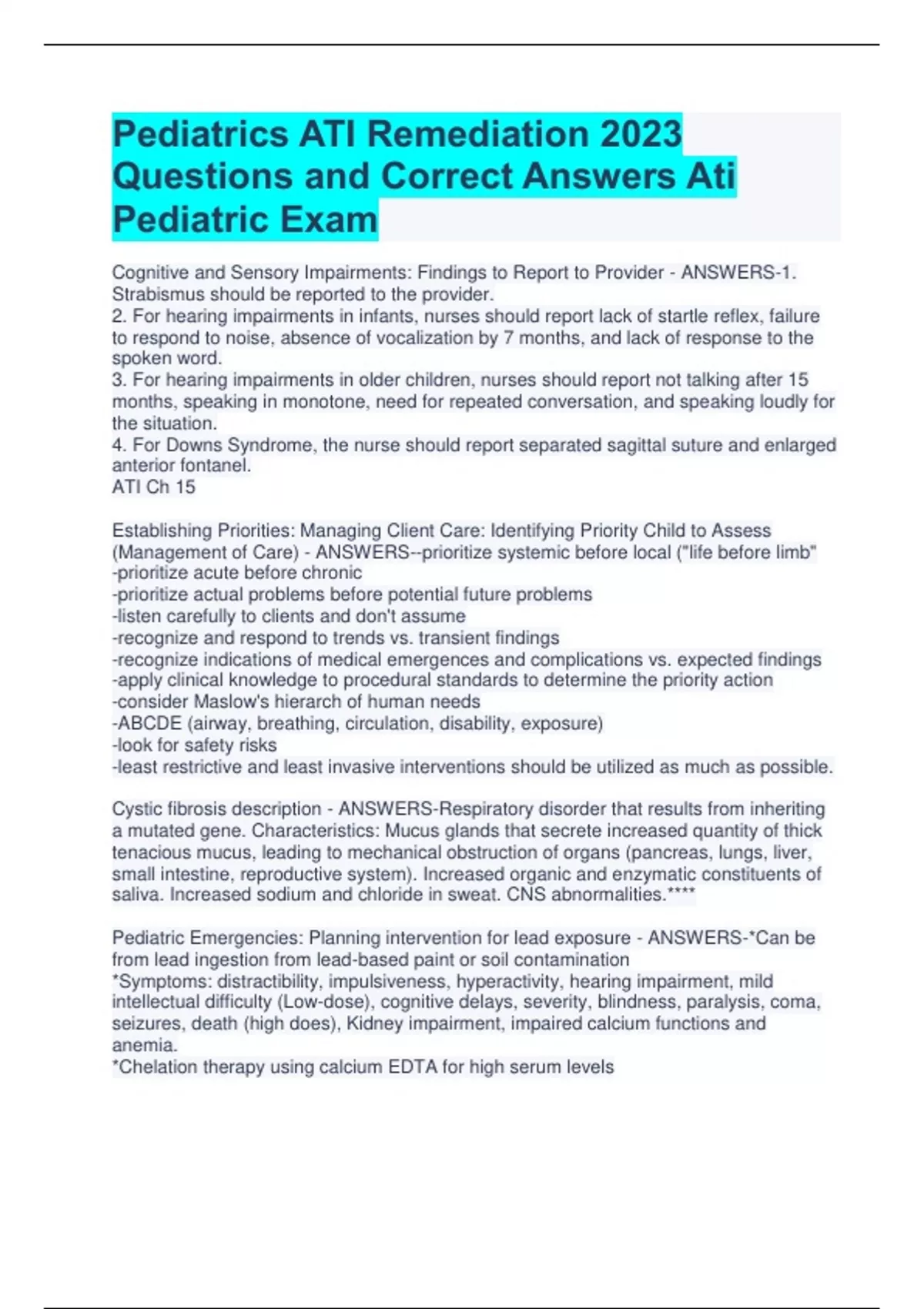 Pediatrics ATI Remediation 2023 Questions and Correct Answers Ati Pediatric Exam
