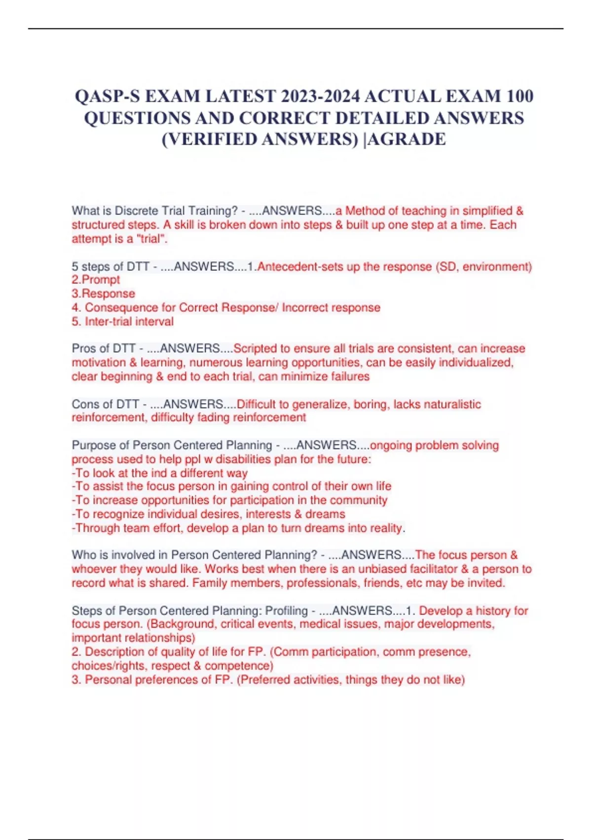 QASP-S EXAM LATEST ACTUAL EXAM 100 QUESTIONS AND CORRECT DETAILED ANSWERS (VERIFIED ANSWERS) |AGRADE