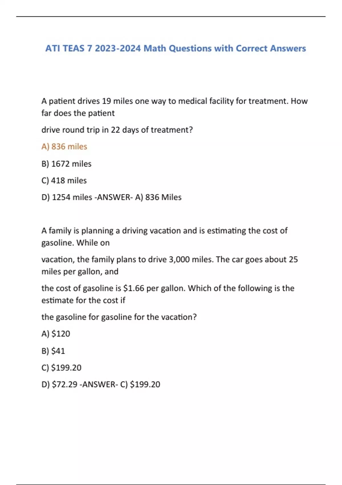 ATI TEAS Math Questions with Correct AnswersATI TEAS Math Questions with Correct AnswersATI TEAS Math Questions with Correct AnswersATI TEAS Math Questions with Correct Answers