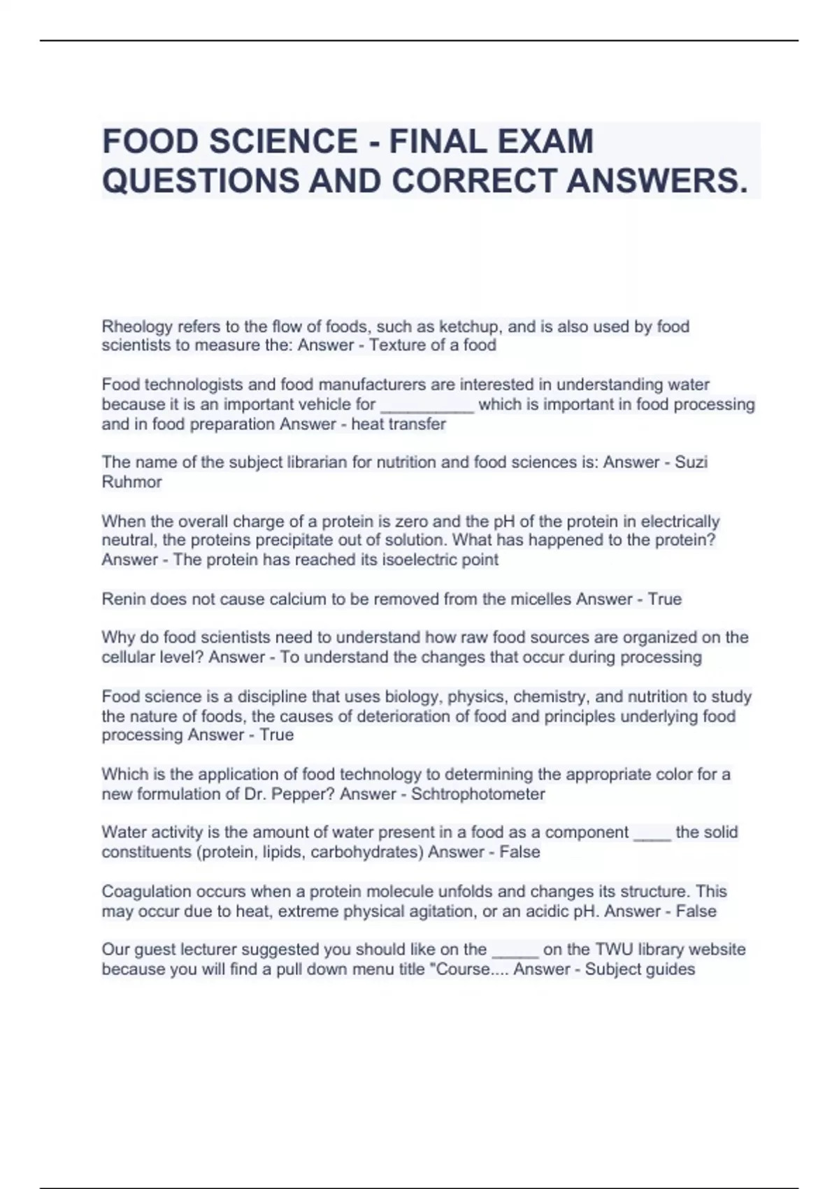 FOOD SCIENCE - FINAL EXAM QUESTIONS AND CORRECT ANSWERS.
