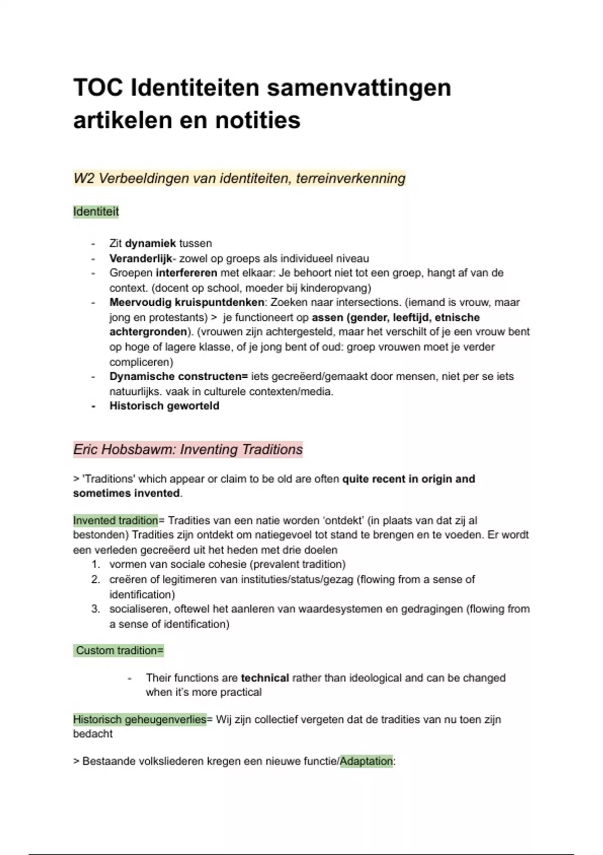 Invented tradition= Tradities van een natie worden ‘ontdekt’ (in plaats van dat zij al