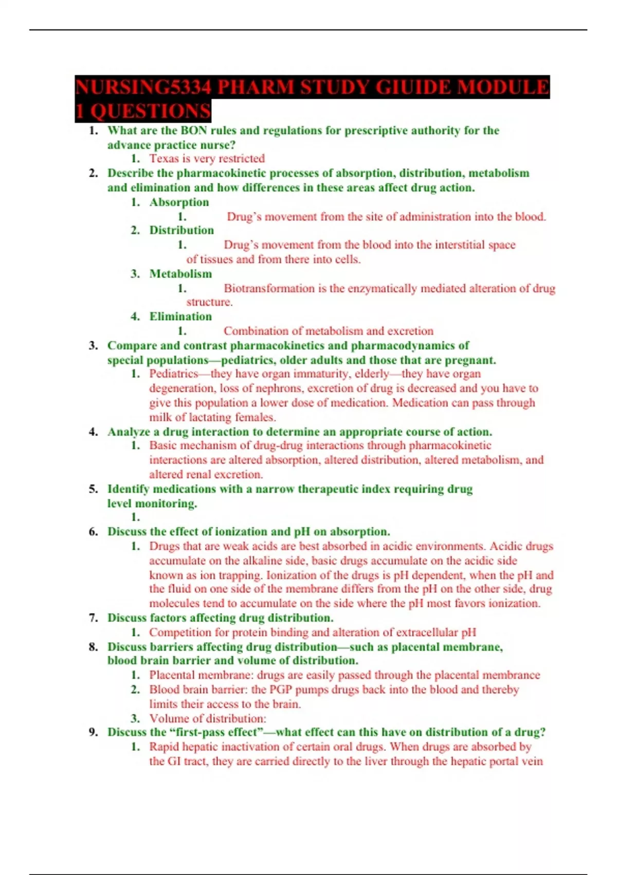 NURSING5334 PHARM STUDY GIUIDE MODULE 1 QUESTIONS