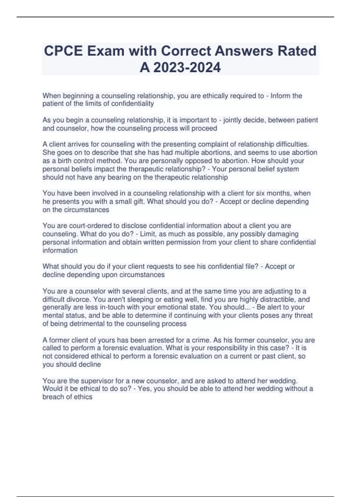 CPCE Exam with Correct Answers Rated A