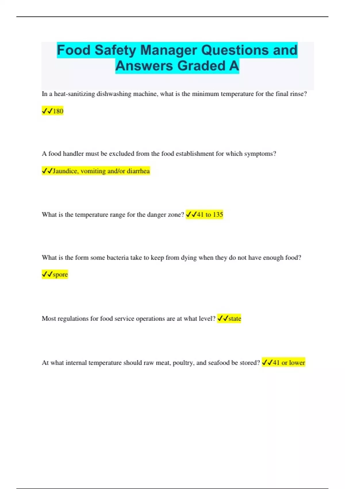 Food Safety Manager Questions and Answers Graded A