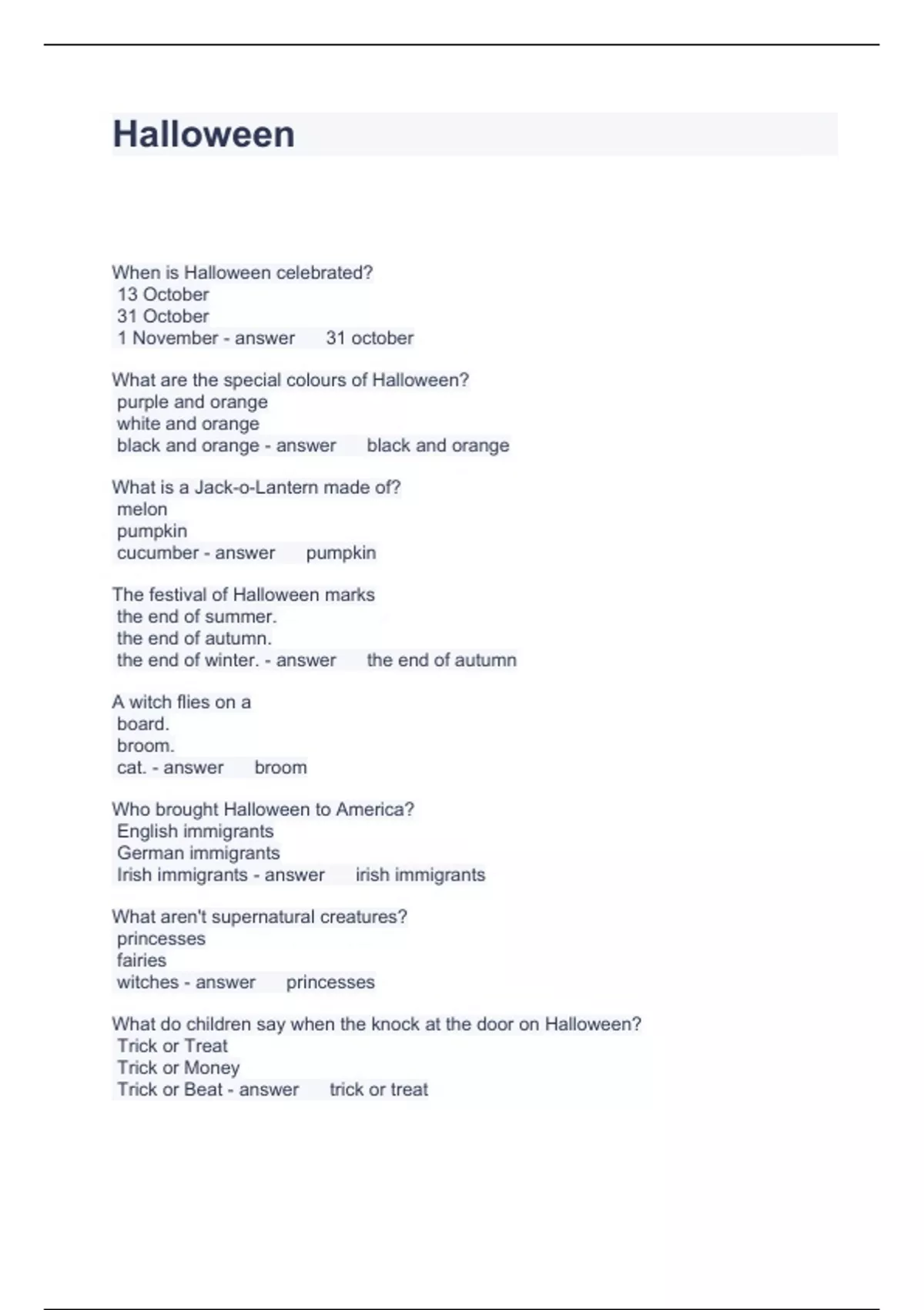 Exam of 2 pages for the course Halloween at Halloween (Halloween)