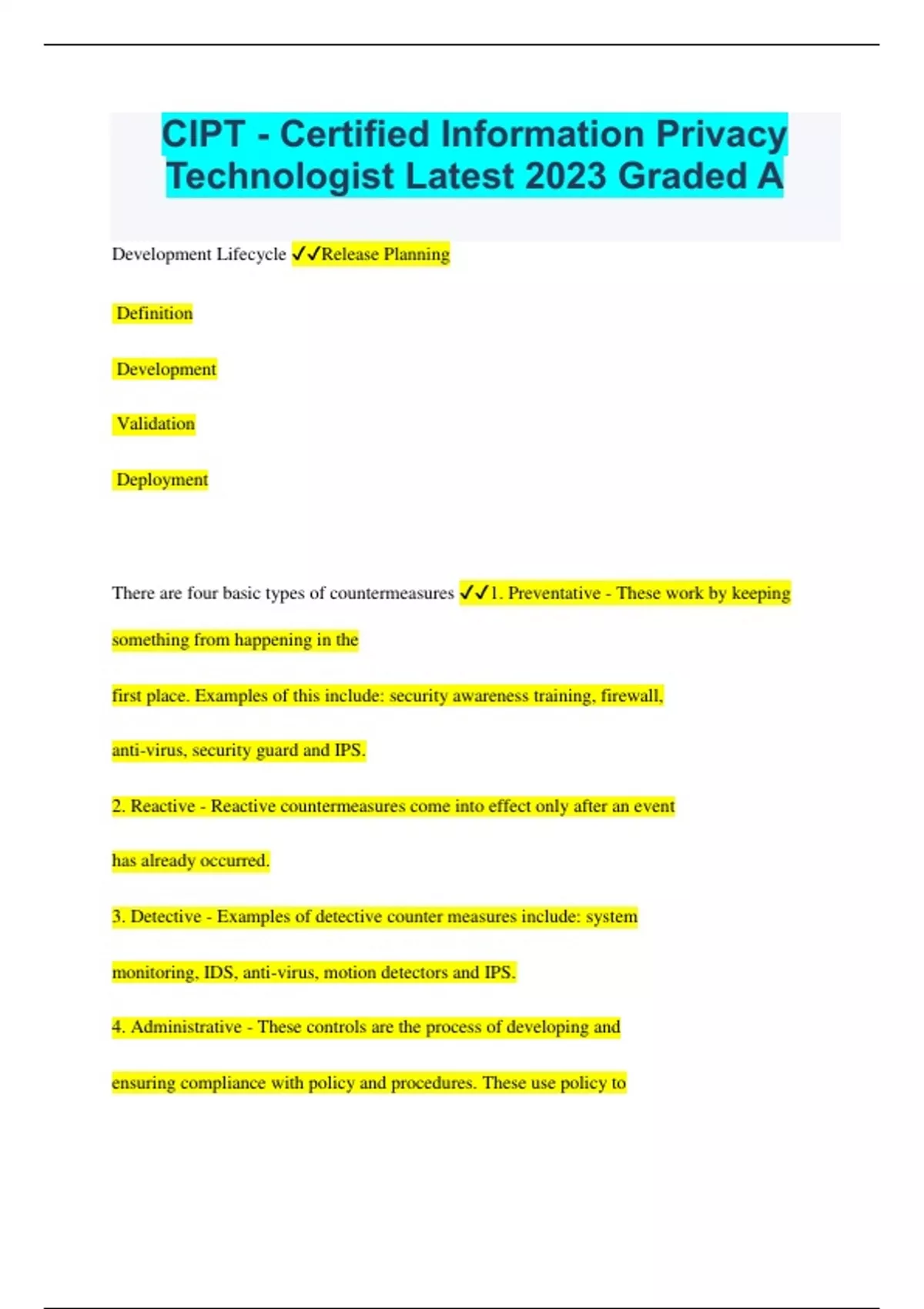 CIPT - Certified Information Privacy Technologist Latest 2023 Graded A