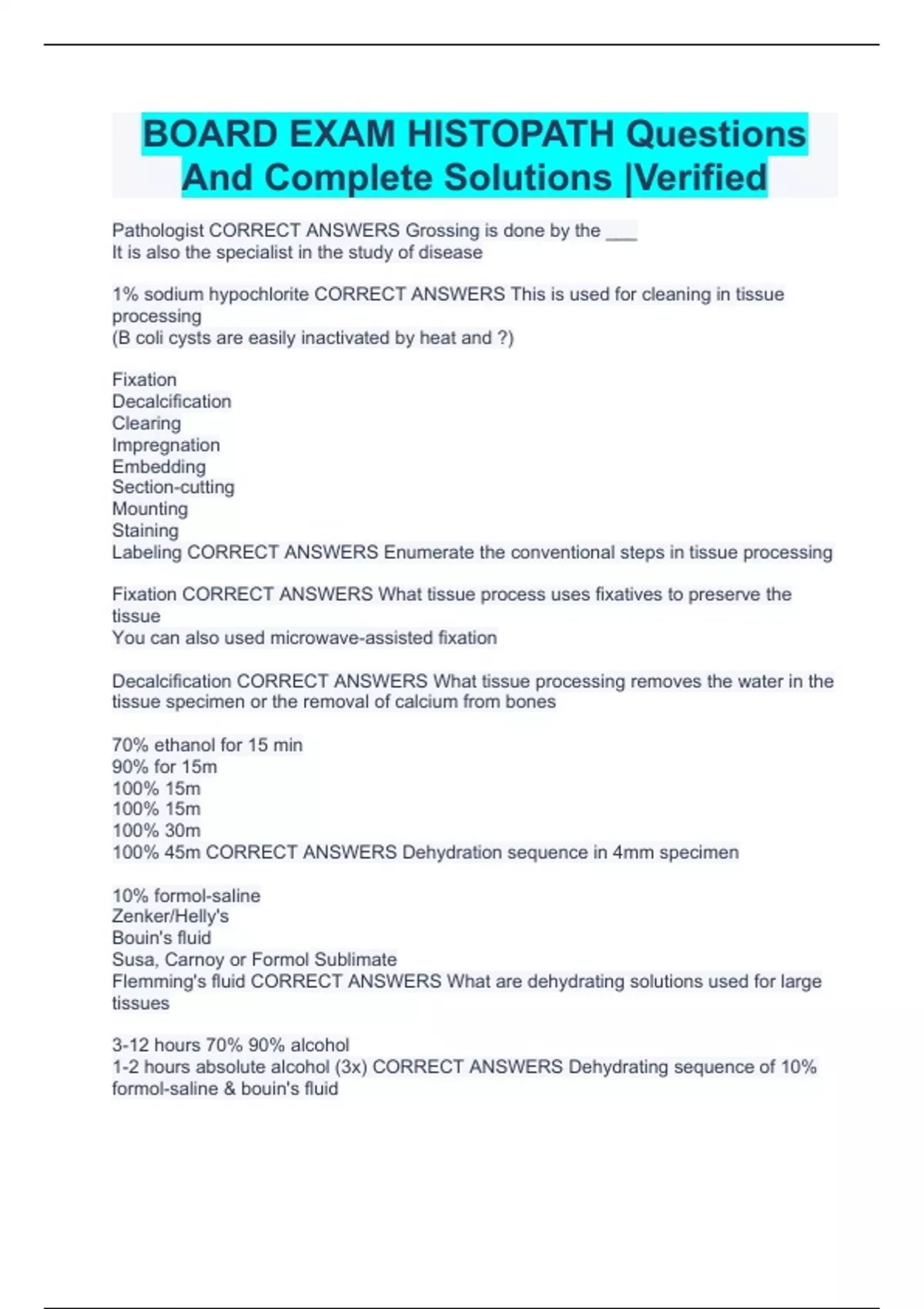BOARD EXAM HISTOPATH Questions And Complete Solutions |Verified