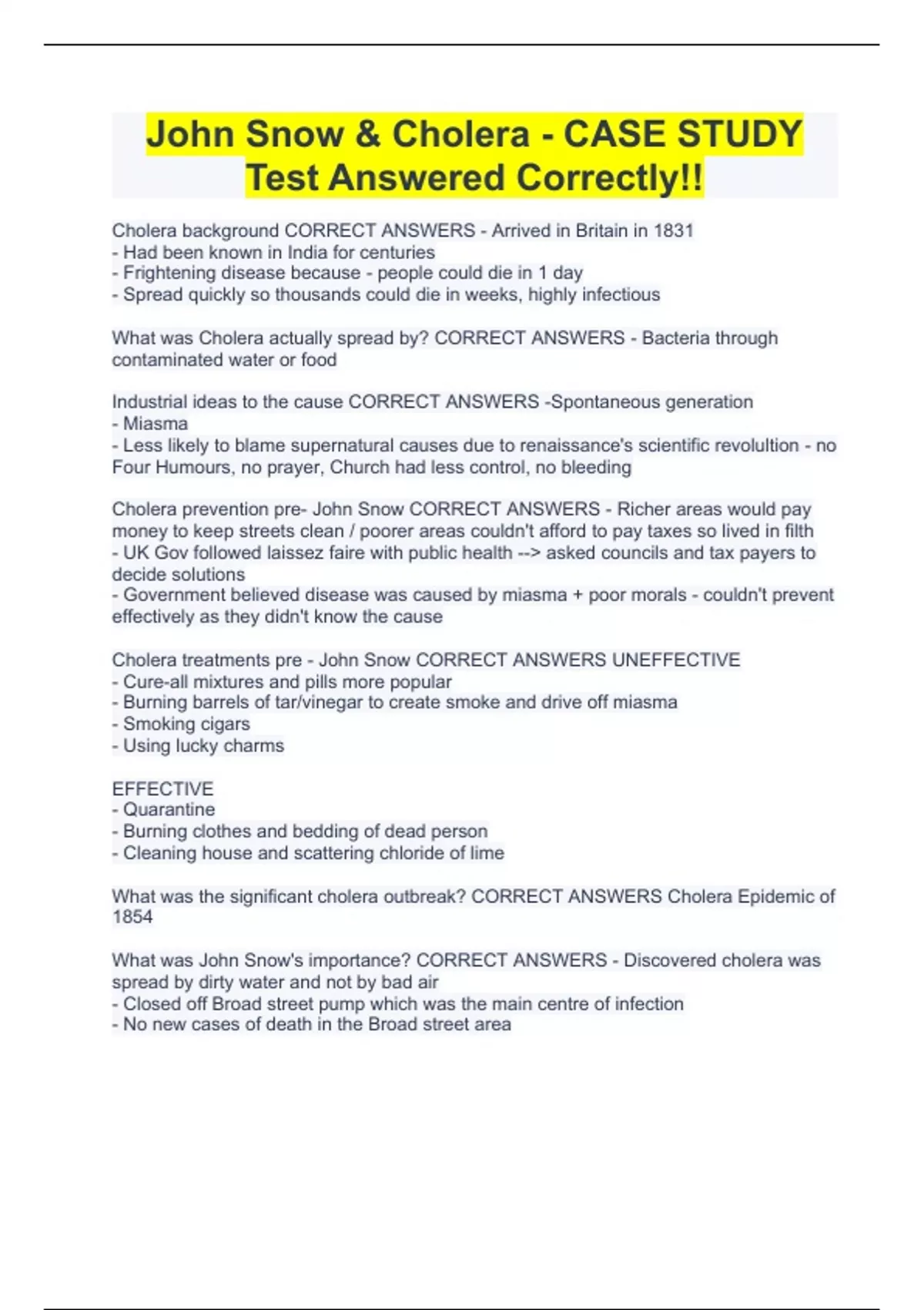 John Snow & Cholera - CASE STUDY Test Answered Correctly!!