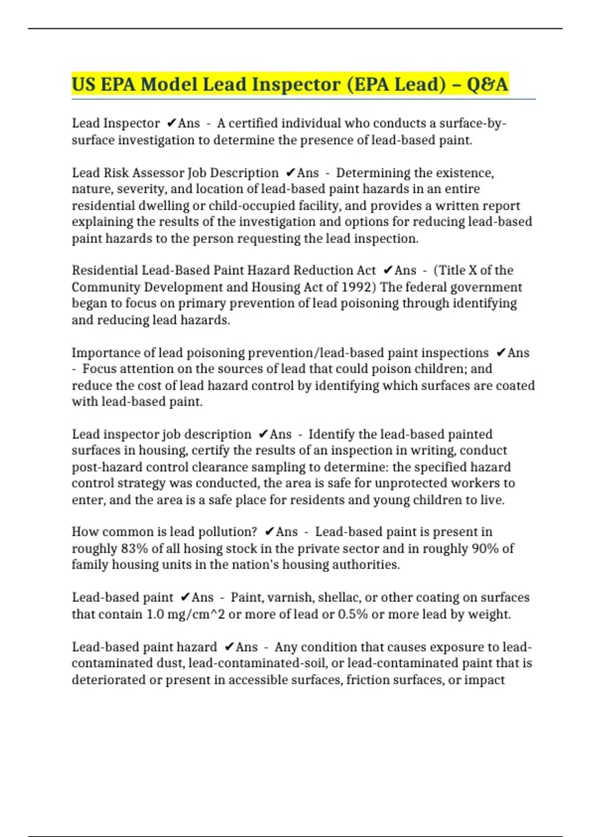 US EPA Model Lead Inspector (EPA Lead) – Q&A
