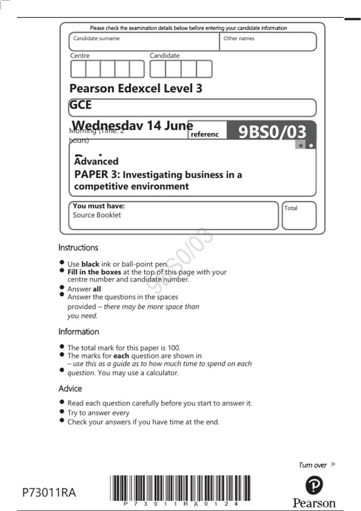 pearson edexcel gce business advanced paper 3