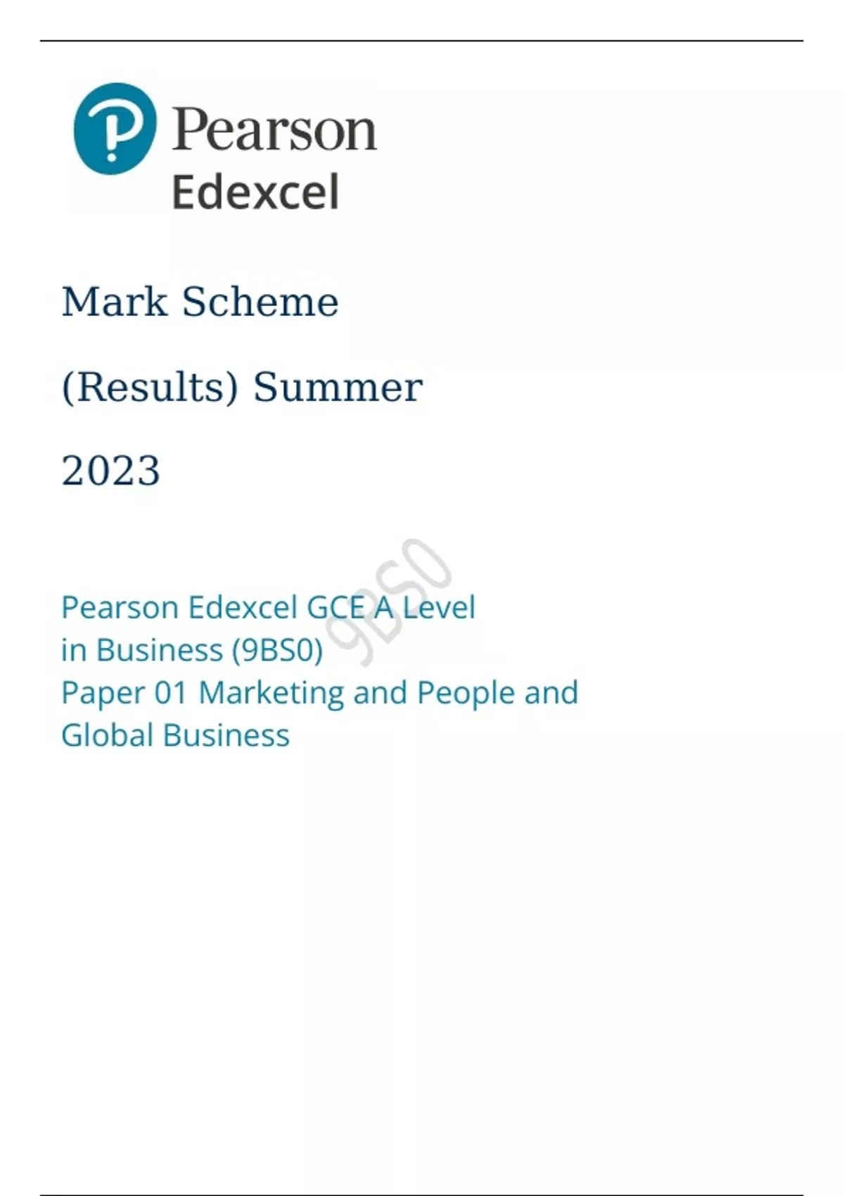Pearson Edexcel GCE A Level in Business (9BS0) Paper 01 Marketing and People and Global Business Summer 2023 Final mark scheme