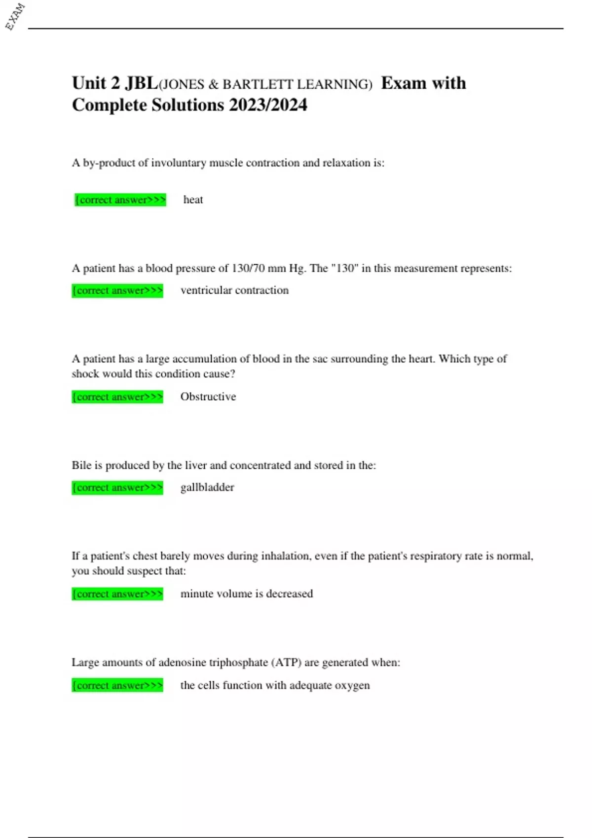 JONES & BARTLETT LEARNING(JBL) EXAMS LATEST QUESTIONS WITH COMPLETE SOLUTIONS / VERIFIED ANSWERS