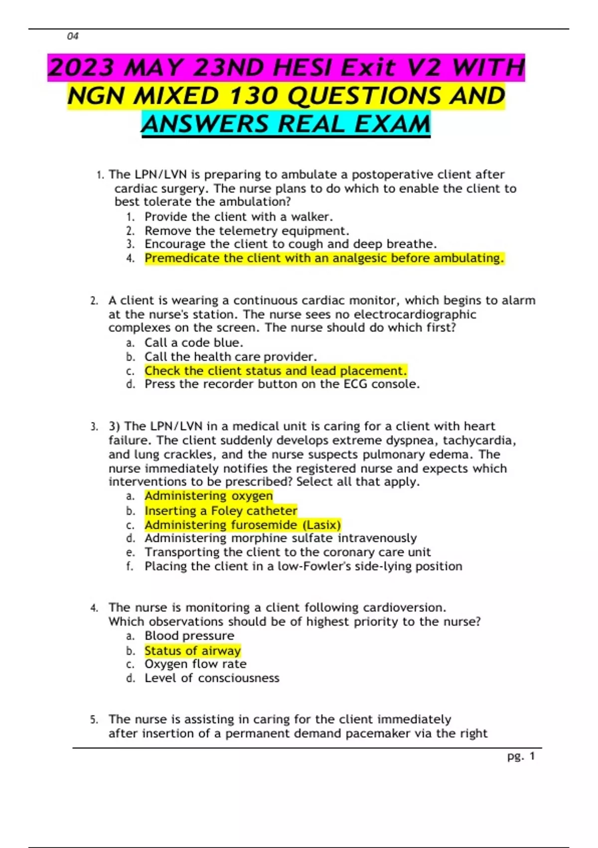 HESI Exit V2 WITH NGN MIXED 130 QUESTIONS AND ANSWERS REAL EXAM HESI Exit V2 WITH NGN MIXED 130 QUESTIONS AND ANSWERS REAL EXAM HESI Exit V2 WITH NGN MIXED 130 QUESTIONS AND ANSWERS REAL EXAM
