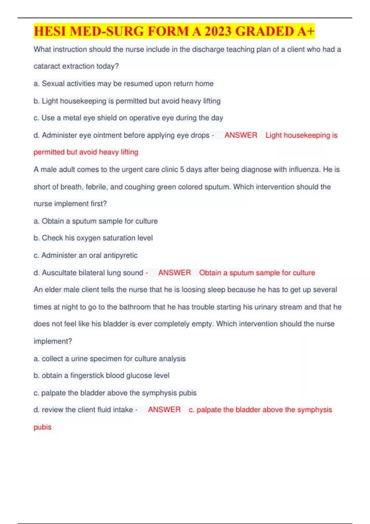 ,HESI MED-SURG FORM A 2023 GRADED A+