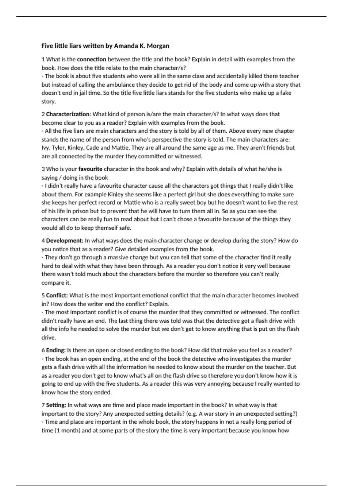 3 Who is your favourite character in the book and why? Explain with details of what he/she is