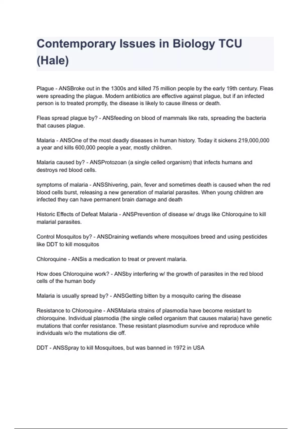 Historic Effects of Defeat Malaria - ANSPrevention of disease w/ drugs like Chloroquine to kill