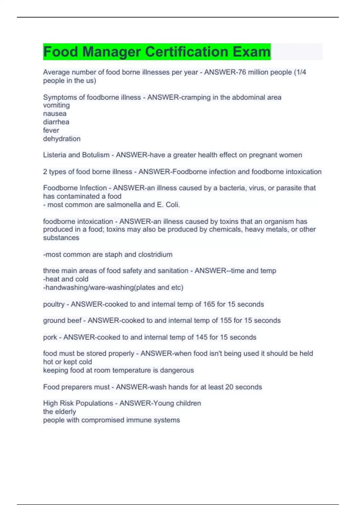 Food Manager Exam Package Deal -Solved