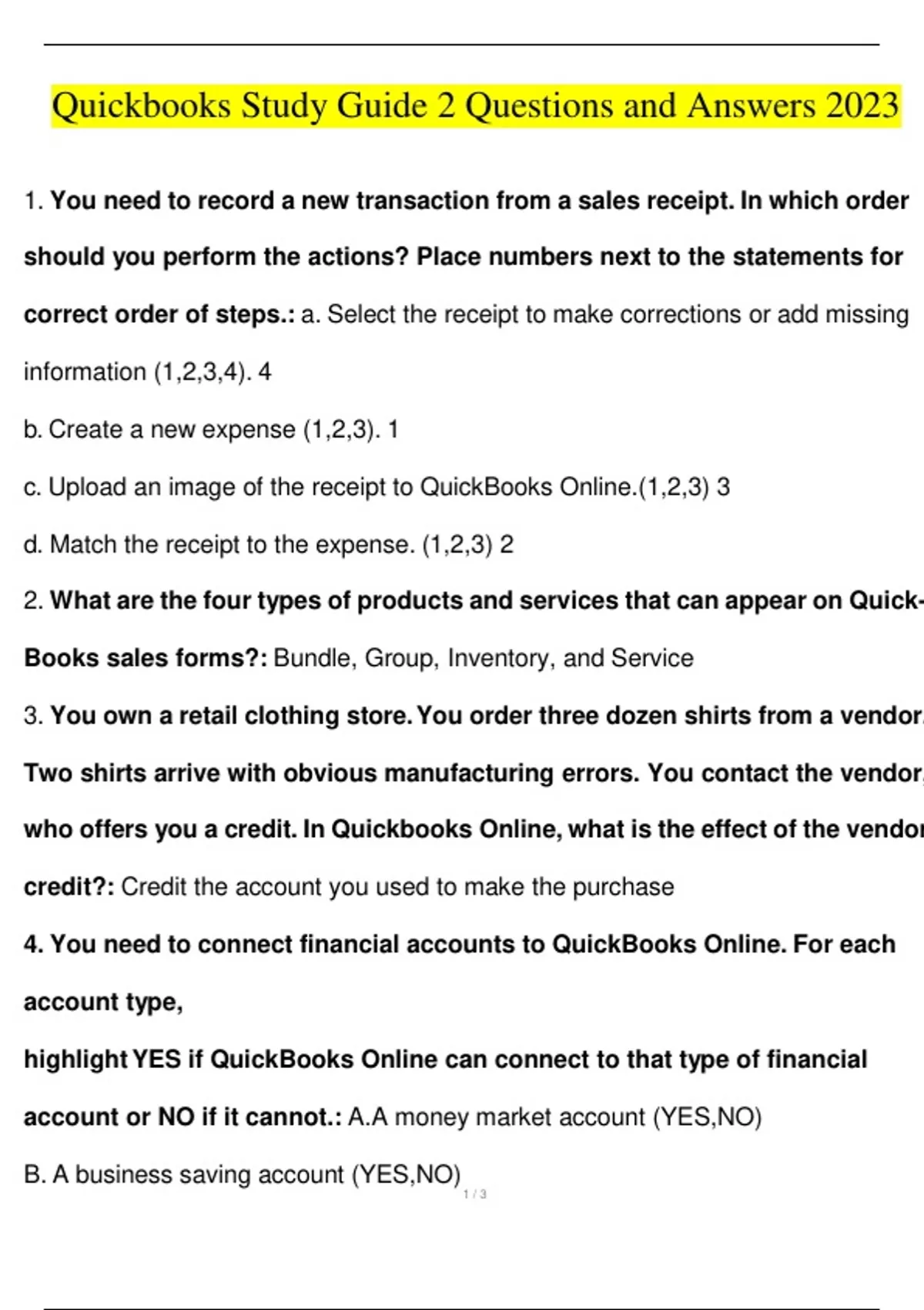 Quickbooks Study Guide 2 Questions and Answers 2023