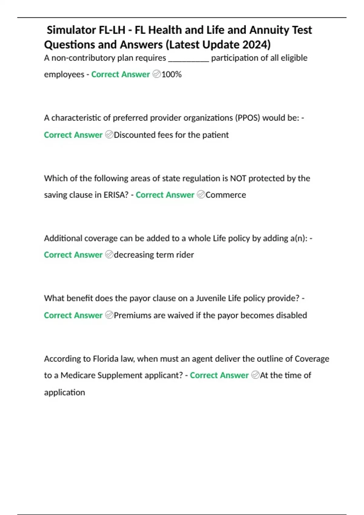 Simulator FL-LH - FL Health and Life and Annuity Test Questions and Answers (Latest Update 2024)