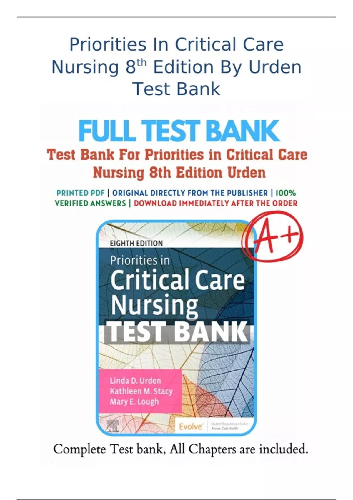 Priorities In Critical Care Nursing 8th Edition By Urden Test Bank | Questions & Explained Answers (Rated A+) | 2023