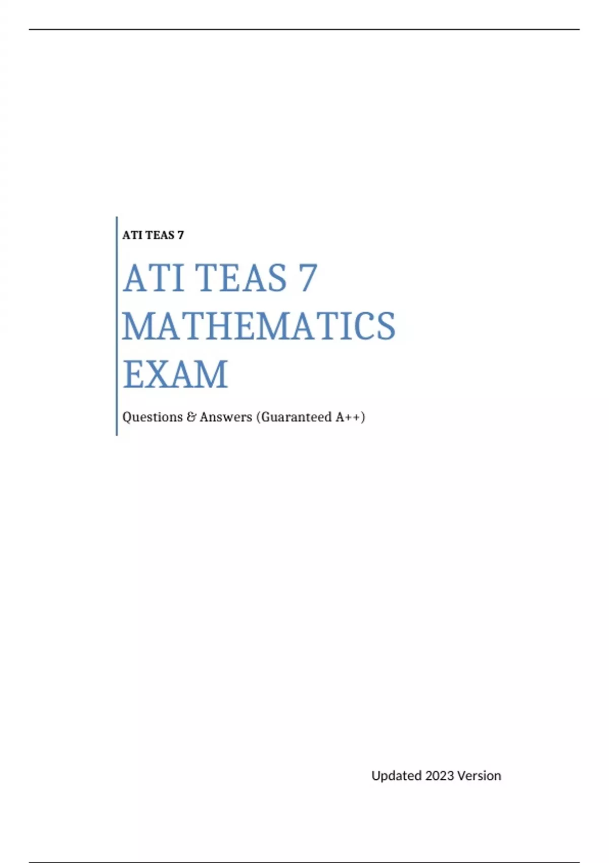 ATI TEAS 7 MATHEMATICS Exam | QUESTIONS & ANSWERS (Scored 97%) | 2023 Update