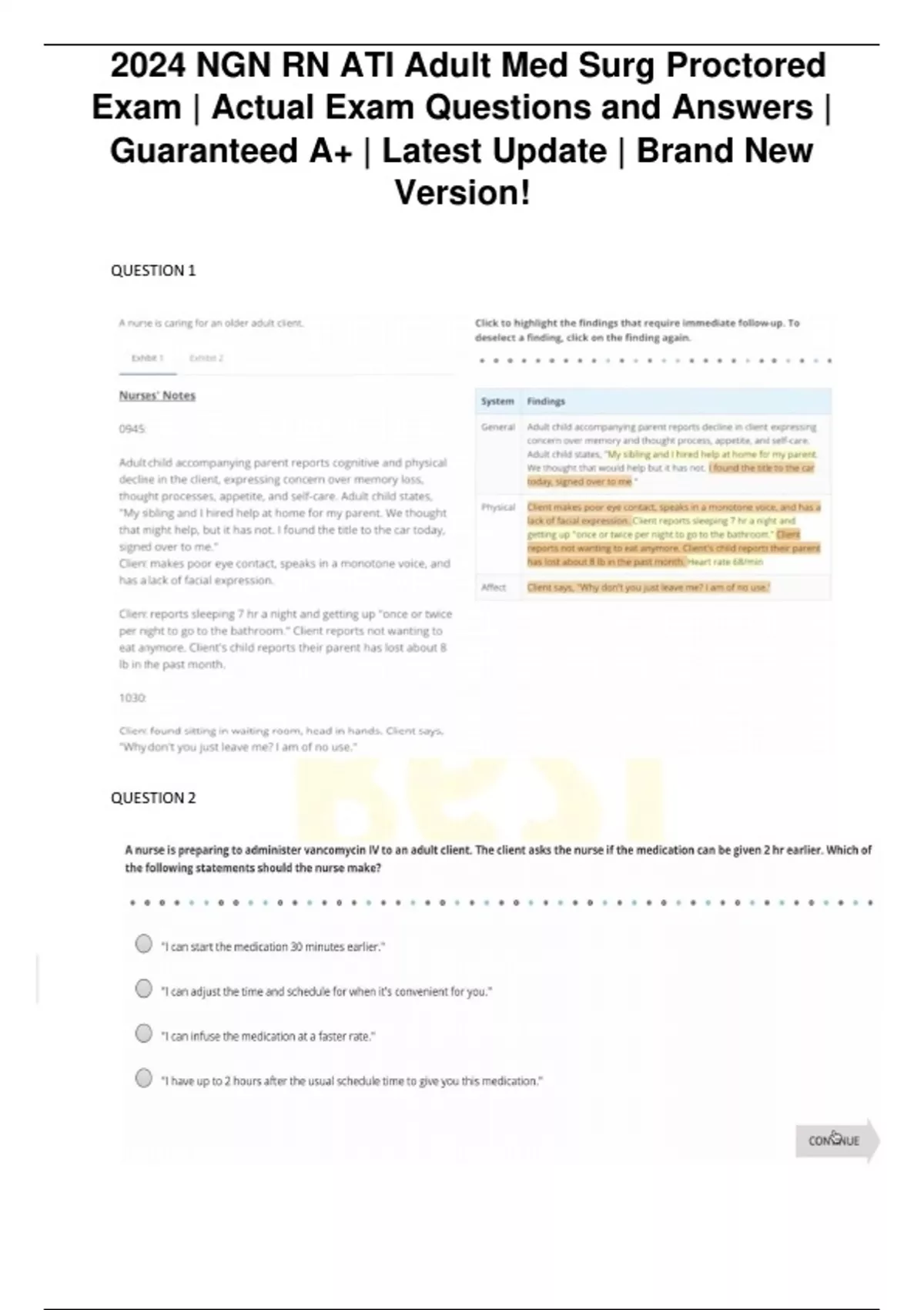 2024 NGN RN ATI Adult Med Surg Proctored Exam | Actual Exam Questions and Answers | Guaranteed A+ | Latest Update | Brand New Version!