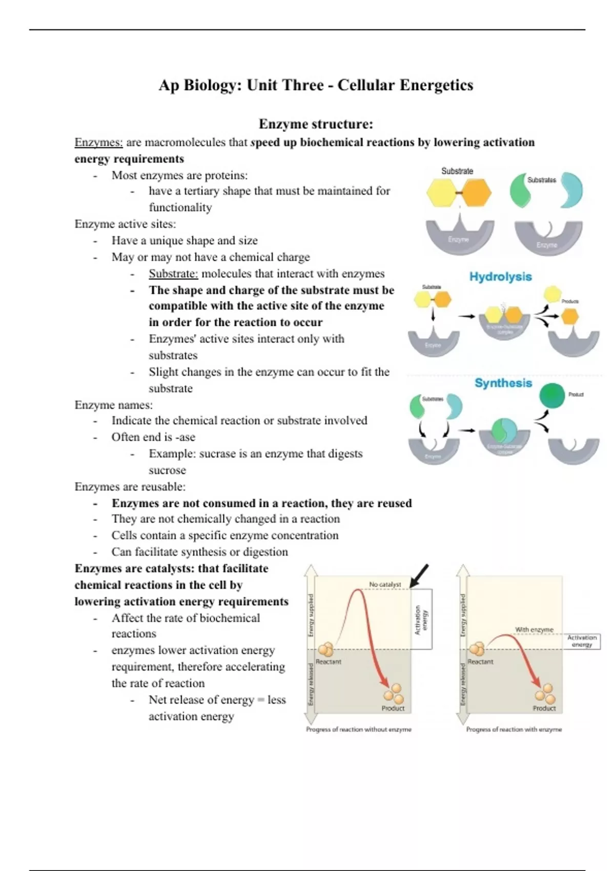 Advanced Placement Biology, college level (equivalent to general education biology college course) - Unit Three: Cellular Energetics