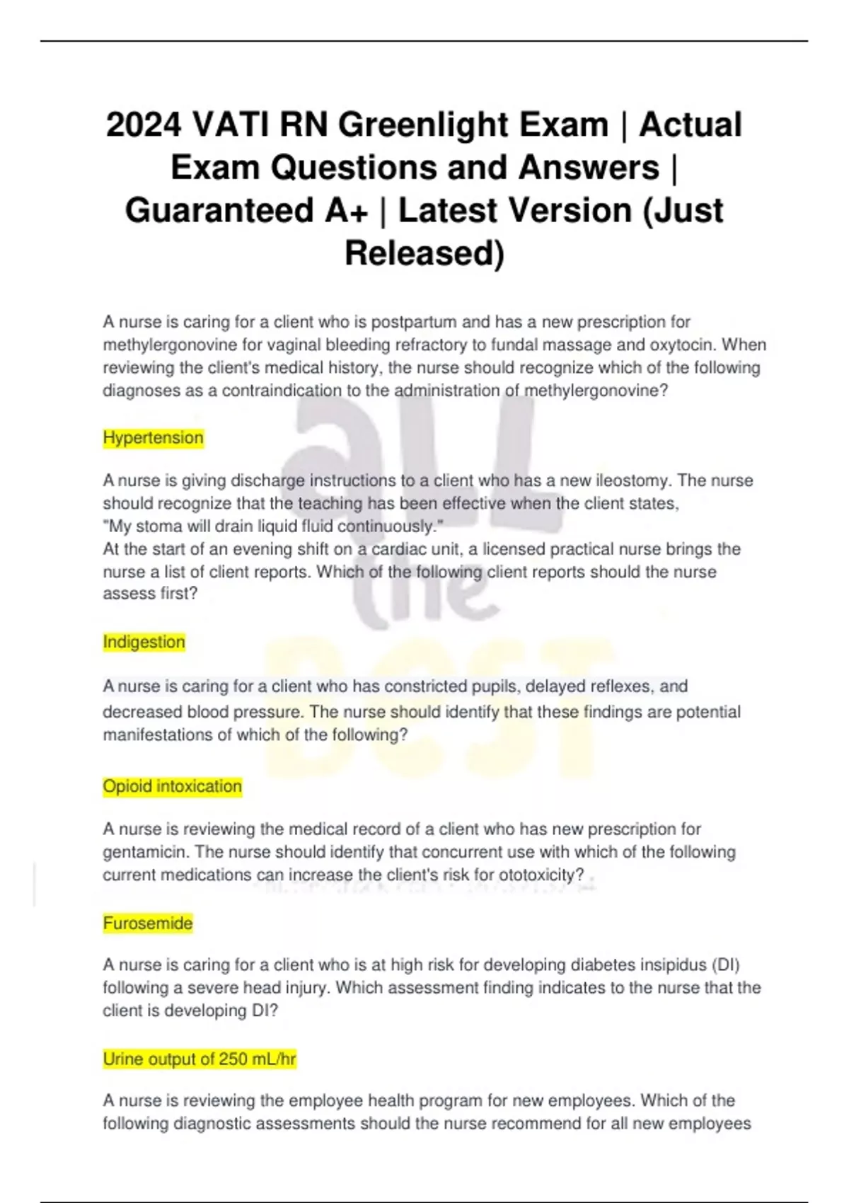 2024 VATI RN Greenlight Exam | Actual Exam Questions and Answers | Guaranteed A+ | Latest Version (Just Released)