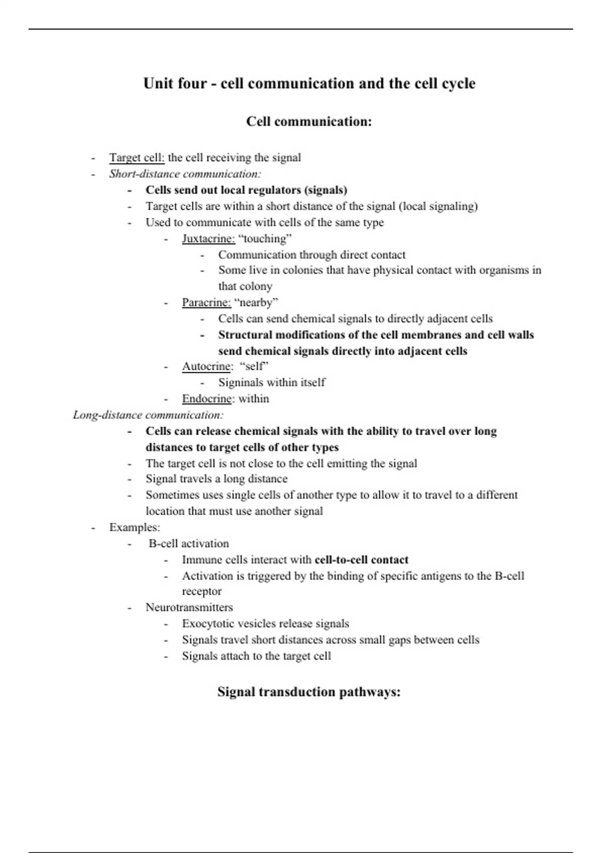 Summary Ap Biology Unit Four: Cell Communication and the Cell Cycle