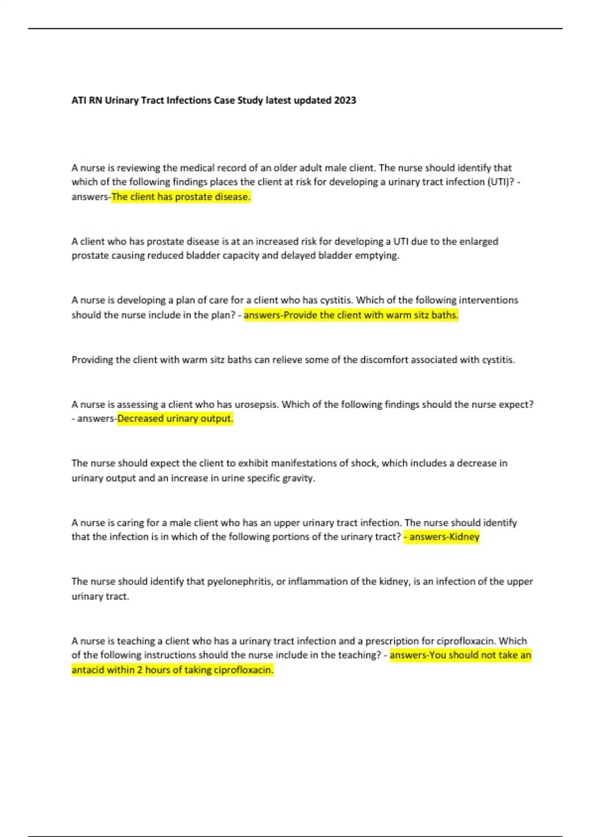ati rn urinary tract infections case study