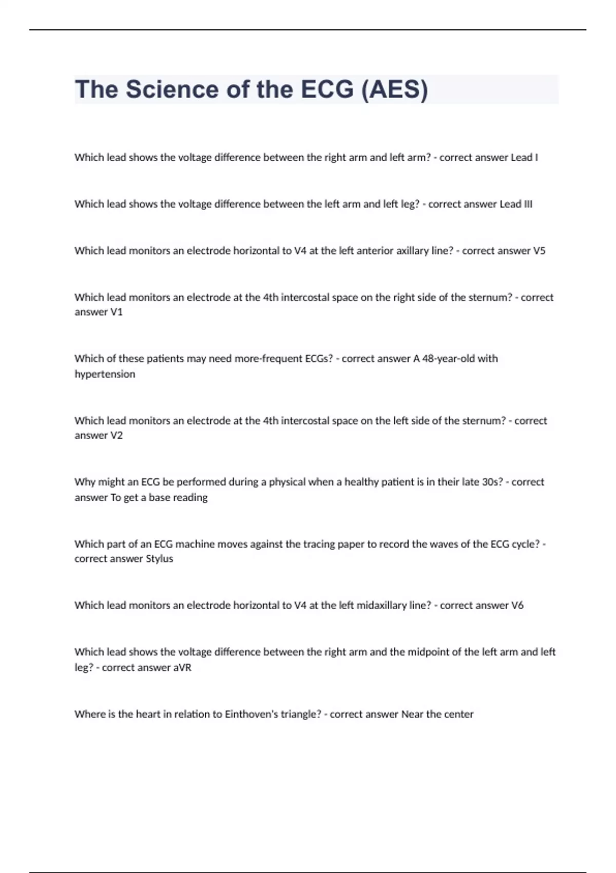 The Science of the ECG (AES) question and answers graded A+ 2023/2024 already passed