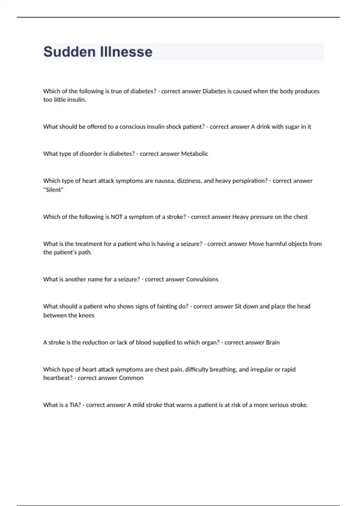 Sudden Illnesse(questions fully solved)graded A+ 2023/2024