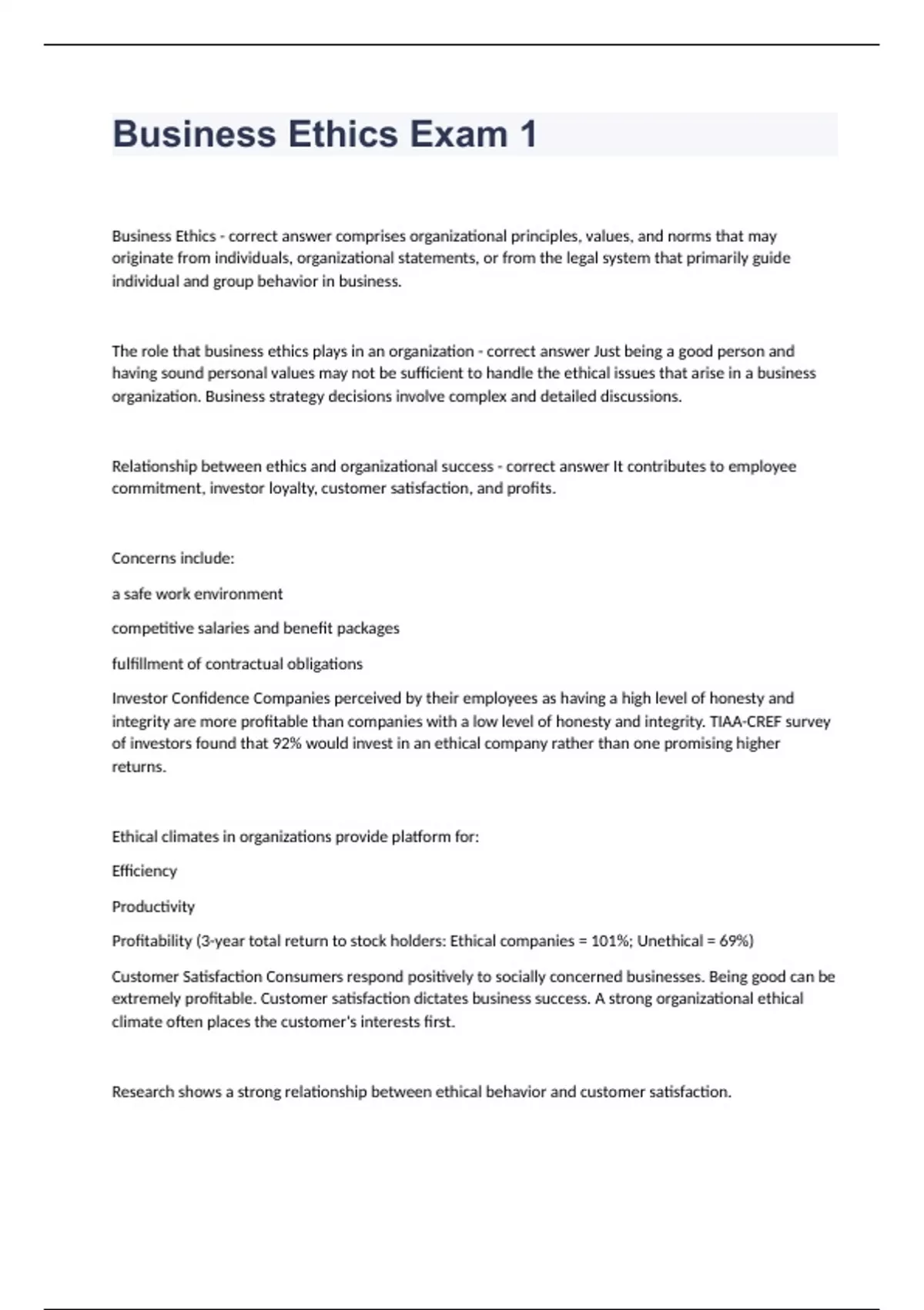 Business Ethics Exam 1 questions with verified solution 2023/2024