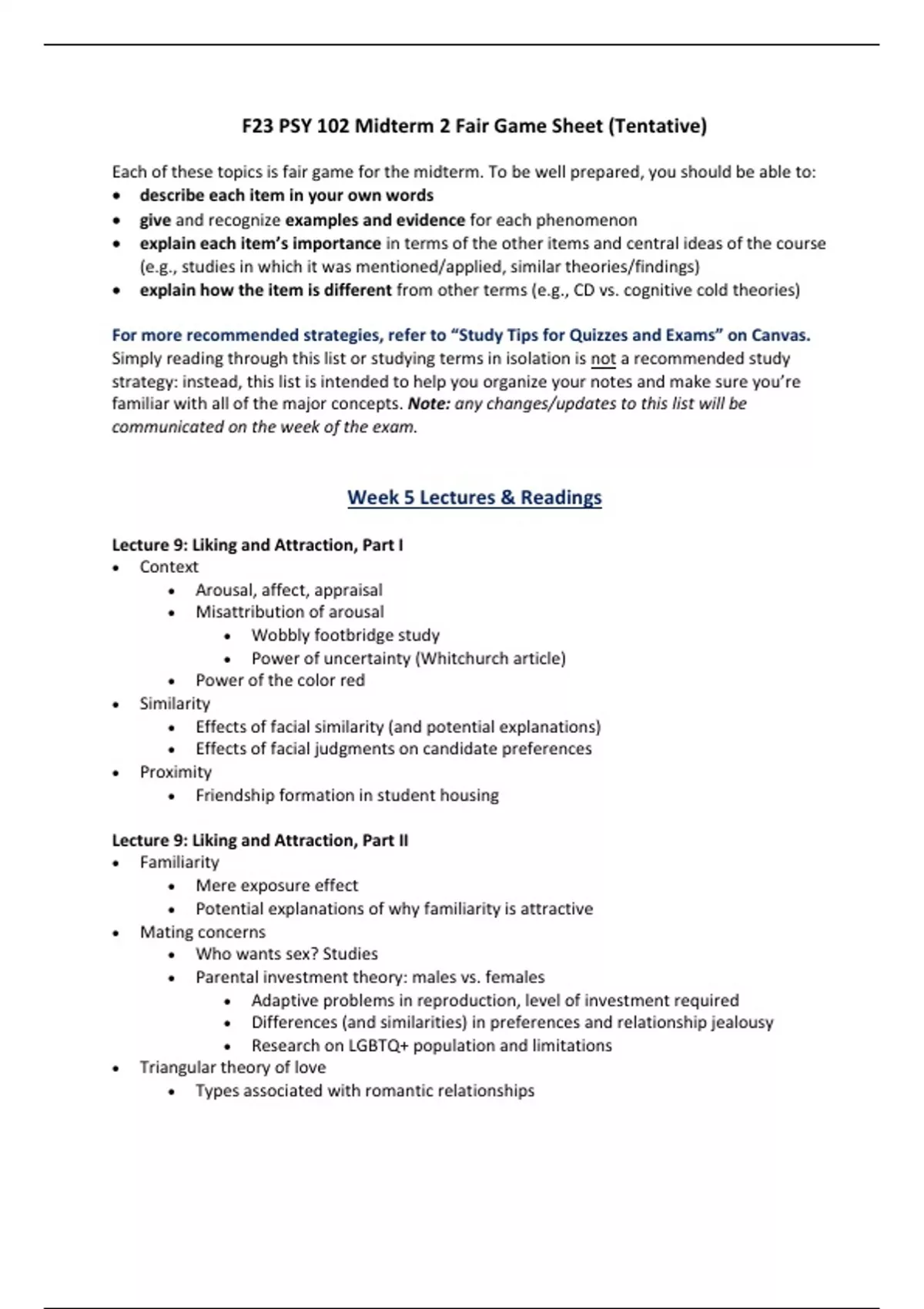 These document provides what will be on the midterm 2 in UCSB PSY 102