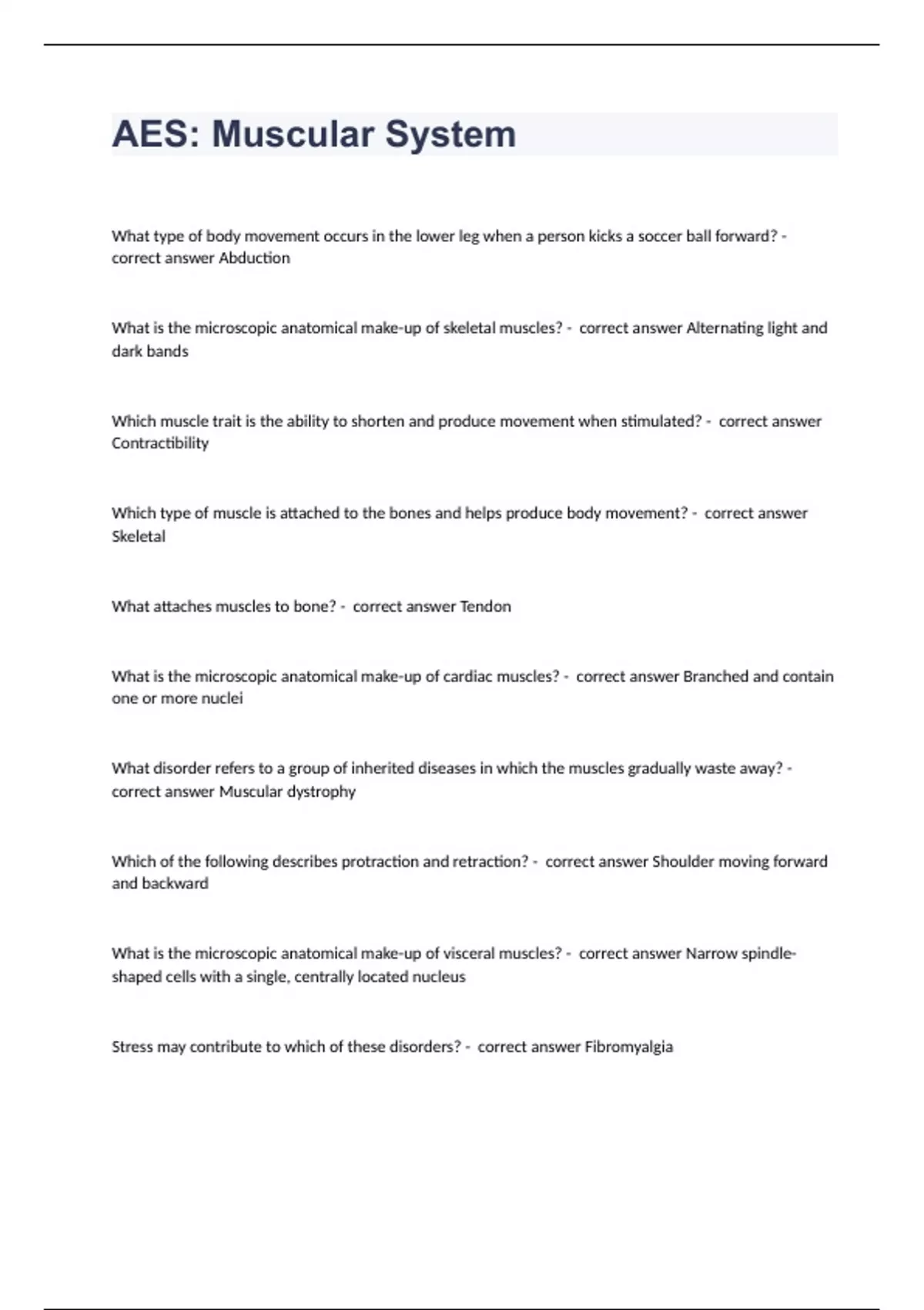 AES Muscular System question n answers rated A+ 2023/2024