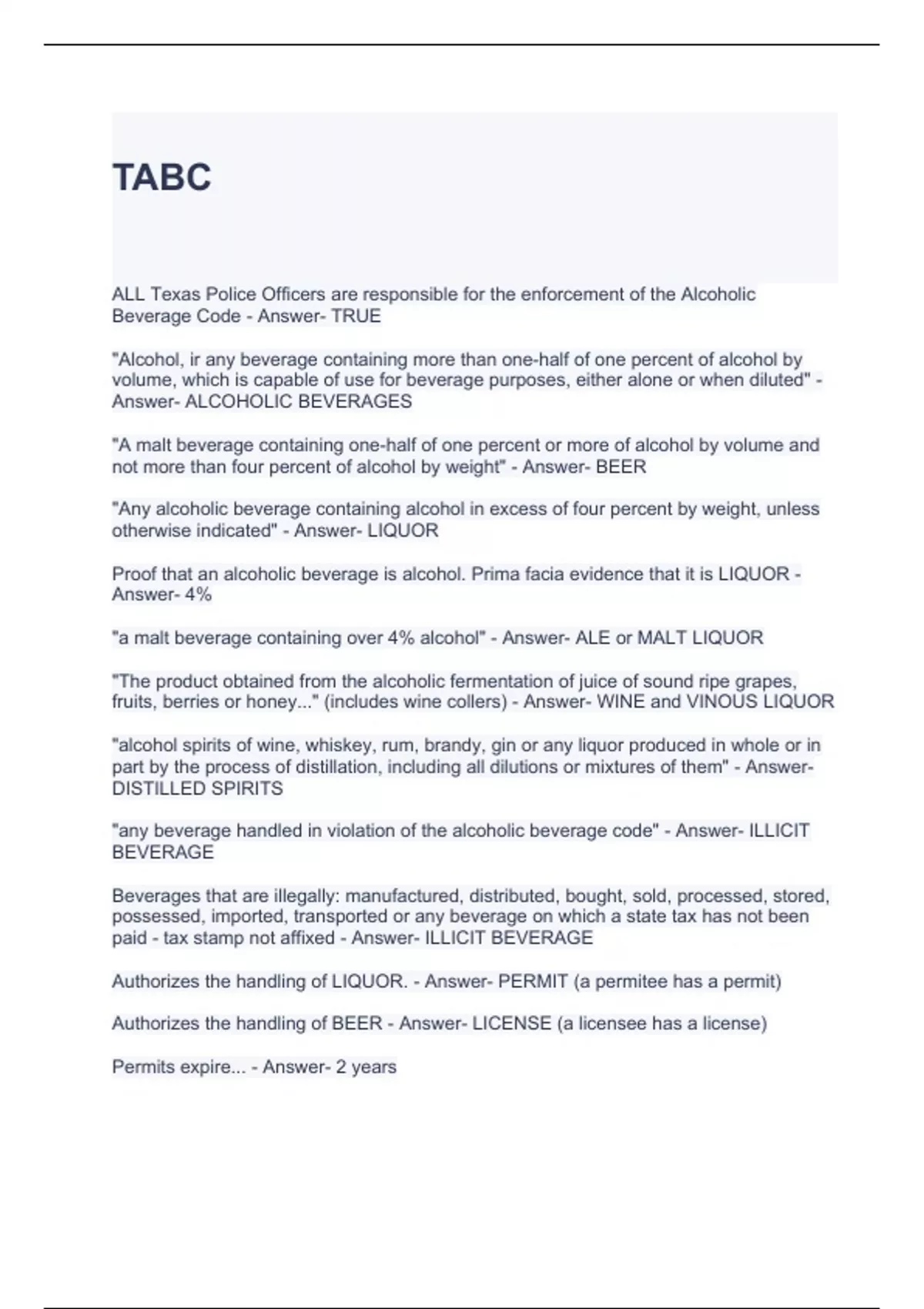 TABC Exam Bundle (Full pack solution)Graded A
