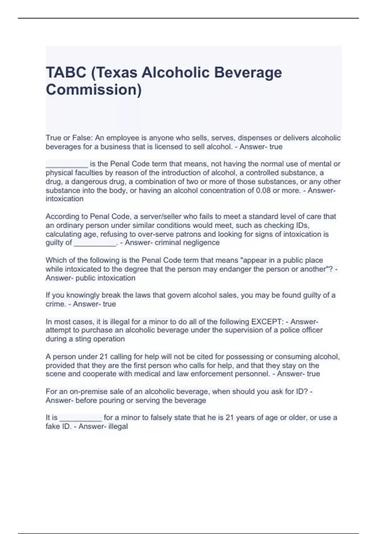 TABC (Texas Alcoholic Beverage Commission) Exam