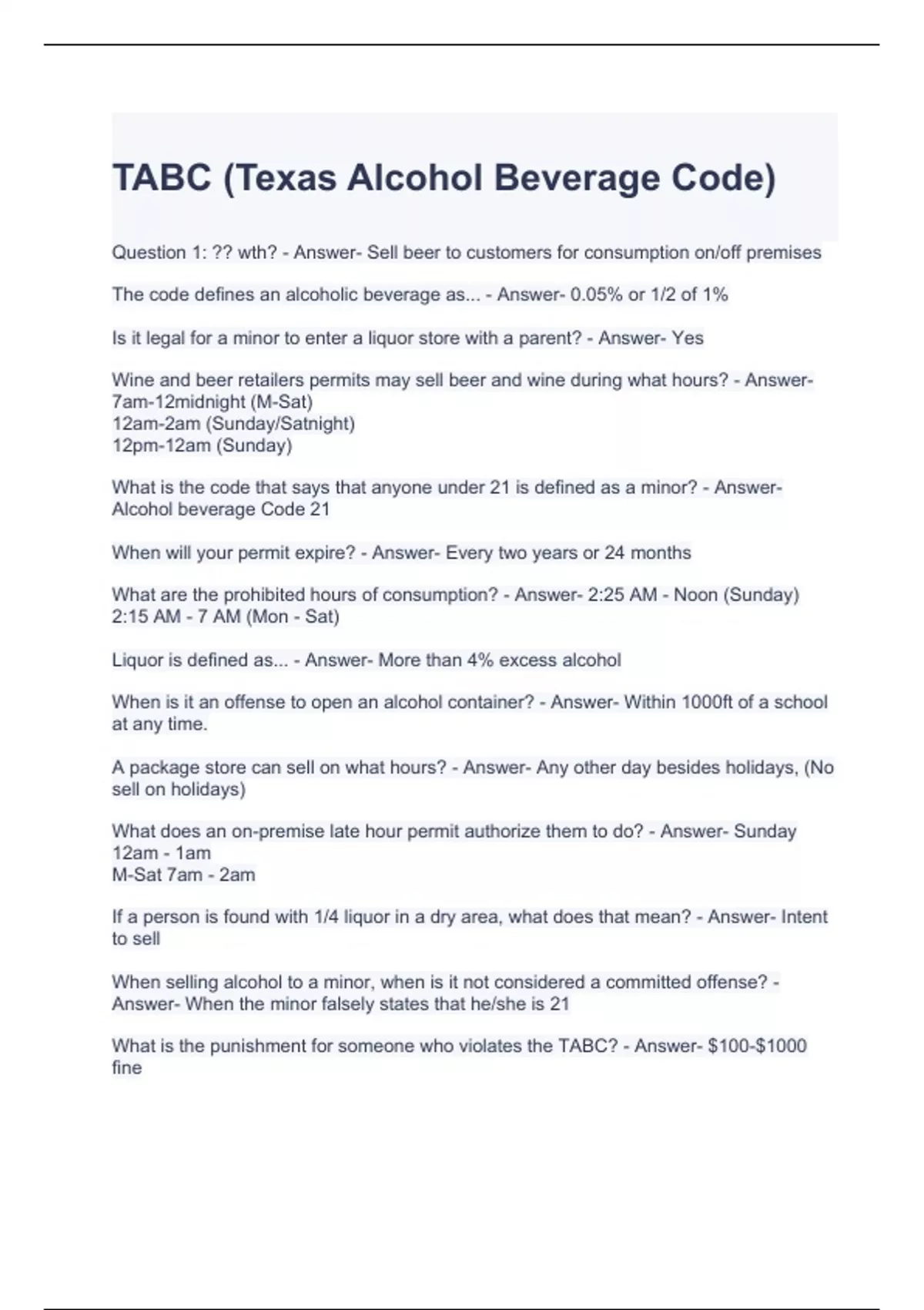 TABC Exam Bundle (Full pack solution)Graded A