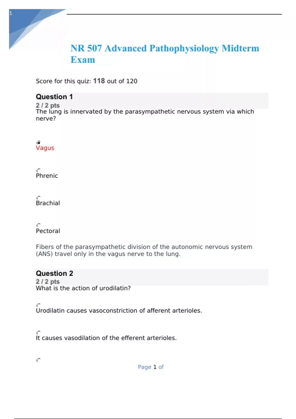 NR 507 Advanced Pathophysiology Midterm Exam Score for this quiz: 118 out of 120
