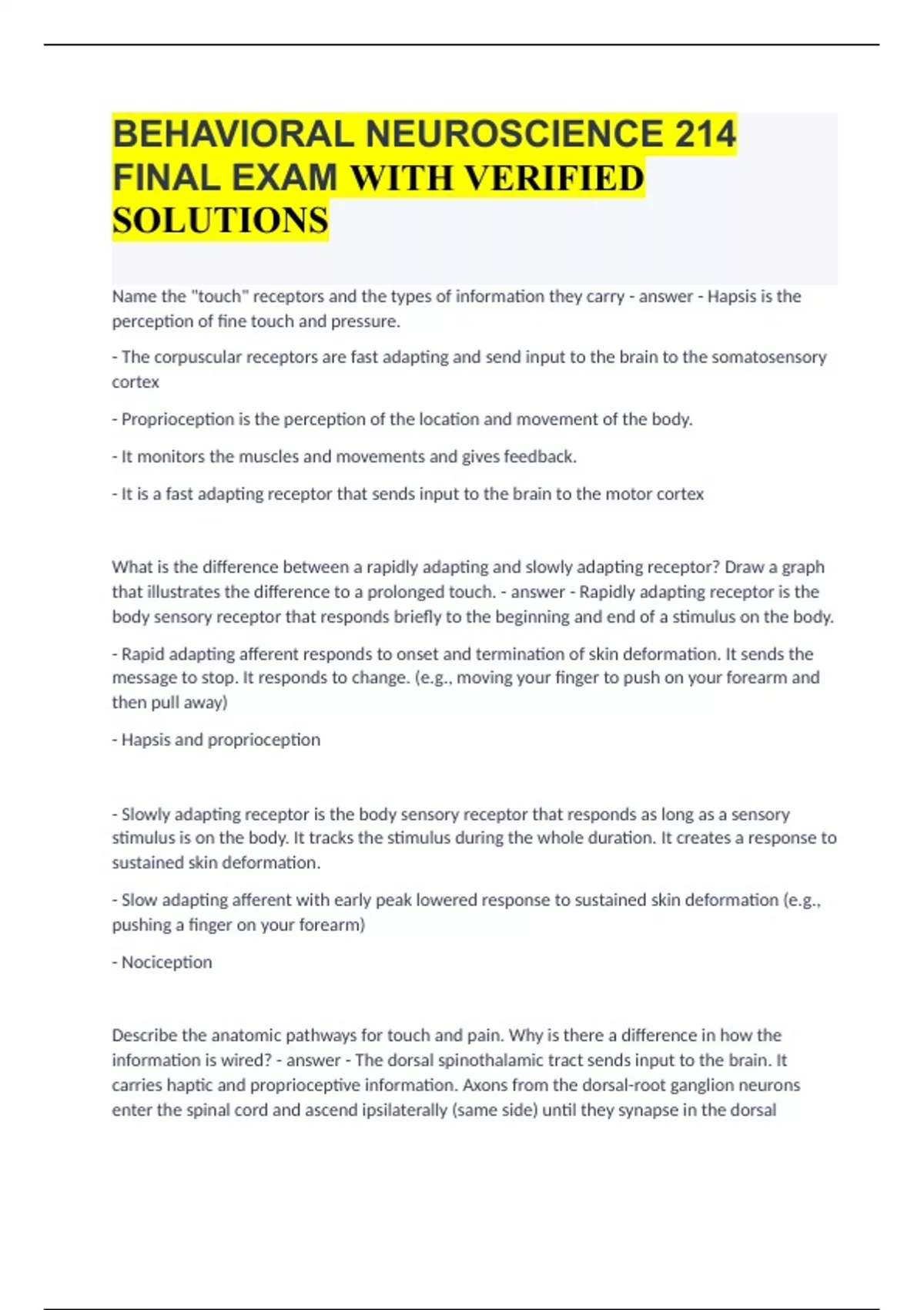 BEHAVIORAL NEUROSCIENCE 214 FINAL EXAM WITH VERIFIED SOLUTIONS|GUARANTEED SUCCESS