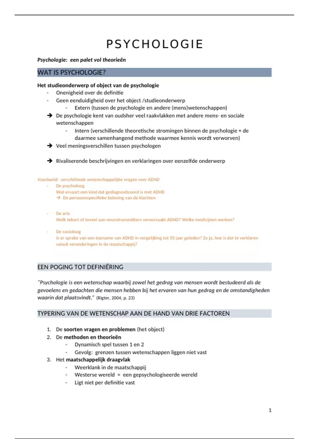 Samenvatting (Psycho-analyse ontbreekt, ik had 12/20 zonder dat deel te studeren)