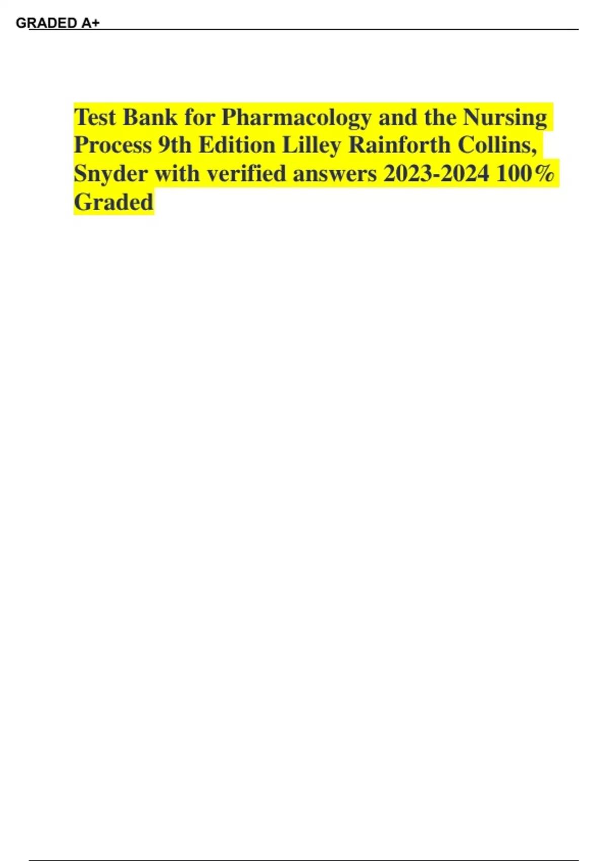 TEST BANK Pharmacology and the Nursing Process 9th Edition Linda Lane Lilley, Shelly Rainforth Collins, Julie S. Snyder _ all chapters 1-58 complete questions, answers, rationales A+ Guide