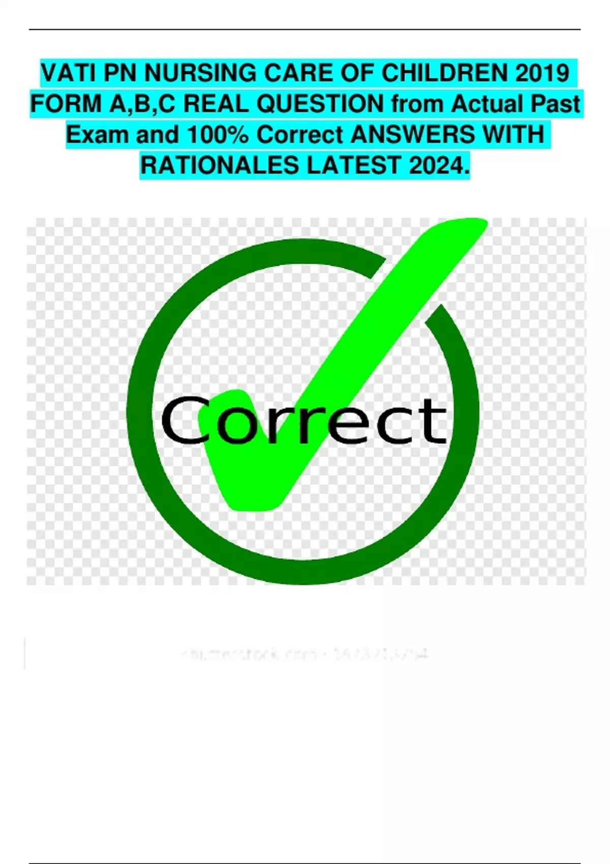 VATI PN NURSING CARE OF CHILDREN 2019 FORM A,B,C REAL QUESTION from Actual Past Exam and 100% Correct ANSWERS WITH RATIONALES LATEST 2024